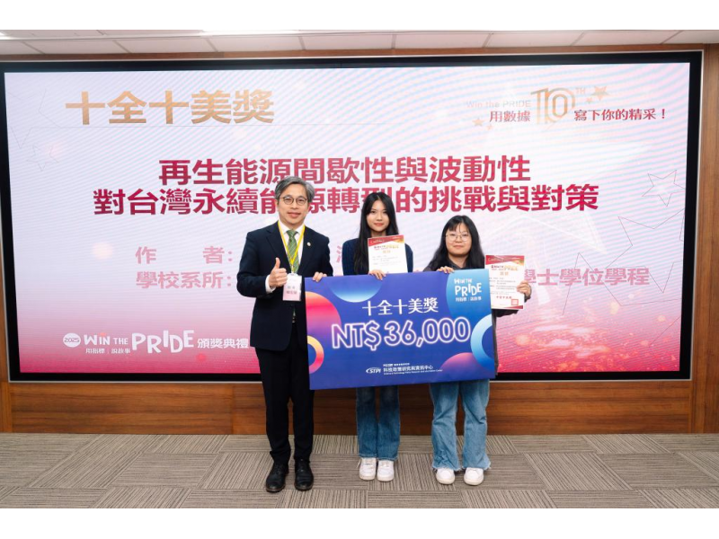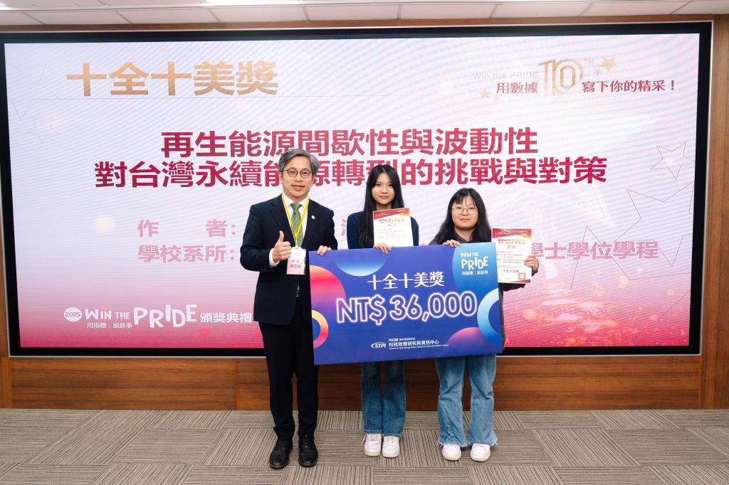 以《再生能源間歇性與波動性對台灣永續能源轉型的挑戰與對策》奪下「十全十美大獎」。
